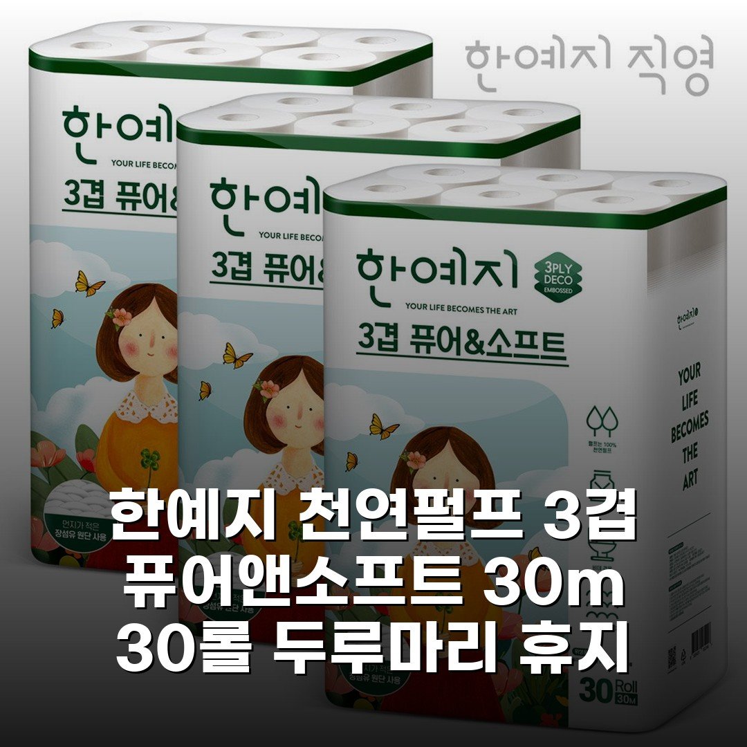 한예지 천연펄프 3겹 퓨어앤소프트 30m 30롤 두루마리 휴지 화장지 3팩, 꿀템 발견했어요!